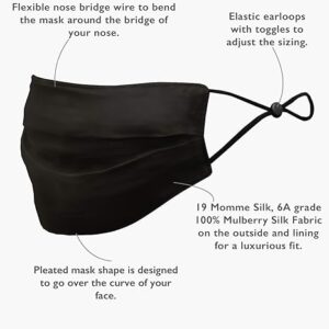 Designed for elegance and practicality, each mask features an adjustable toggle, nose bridge wire, and pleated design for a custom fit without discomfort. Available in a wide range of chic colors, these reusable silk masks are not just protective — they’re a fashion accessory that elevates any look.